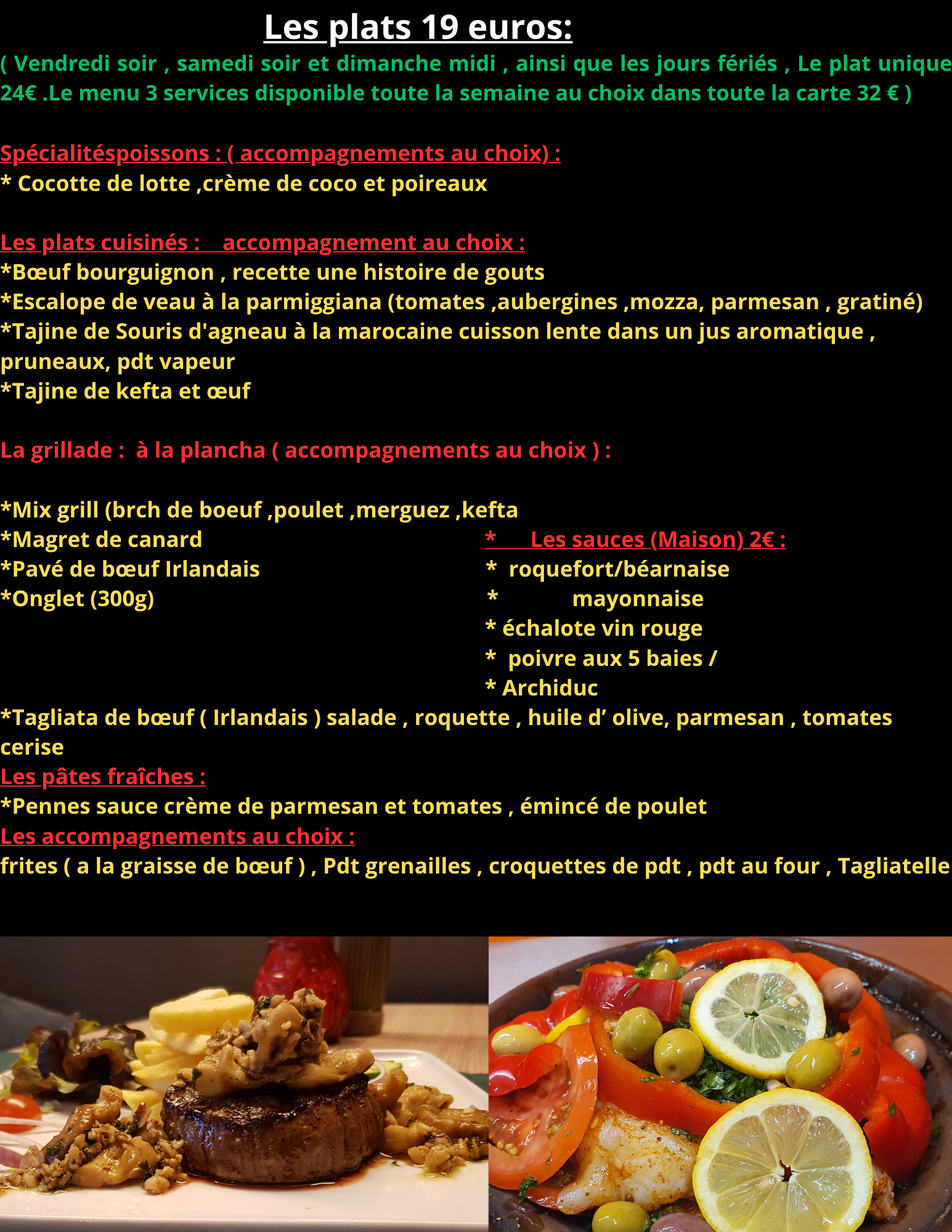 Tout nos plats sont fait maison et cuisinés exclusivement à partir de produits frais ! (service traiteur disponible aussi)