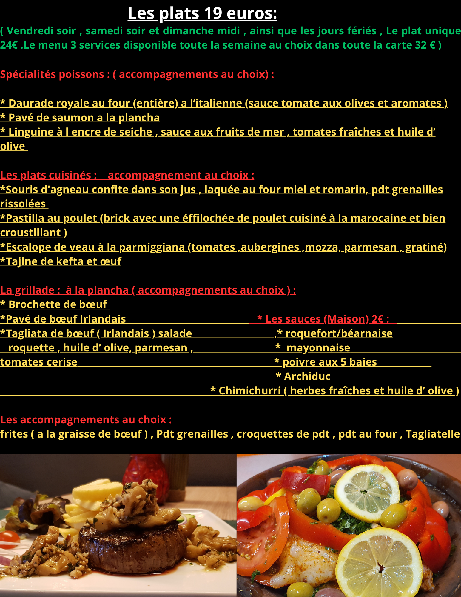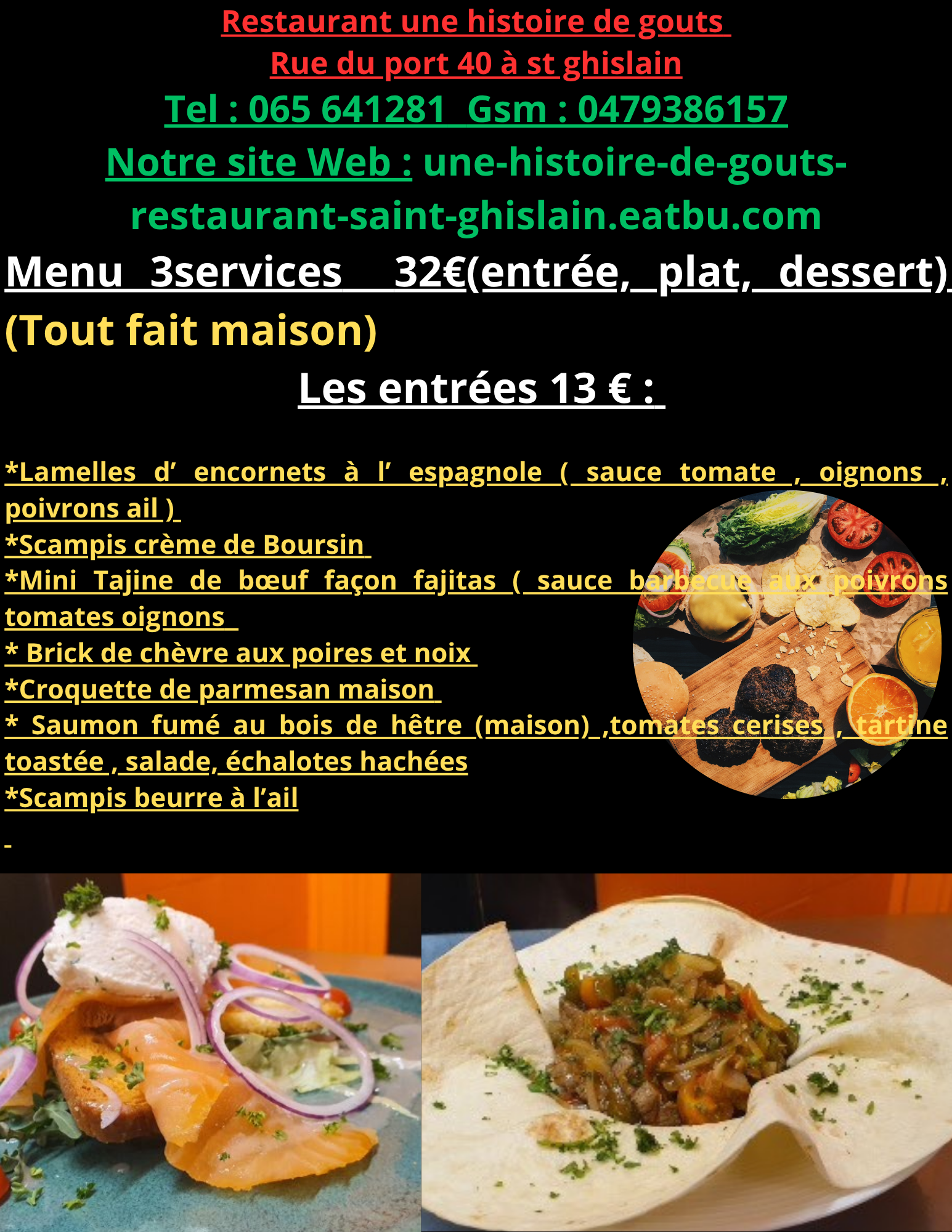 Tout nos plats sont fait maison et cuisinés exclusivement à partir de produits frais ! (service traiteur disponible aussi)
