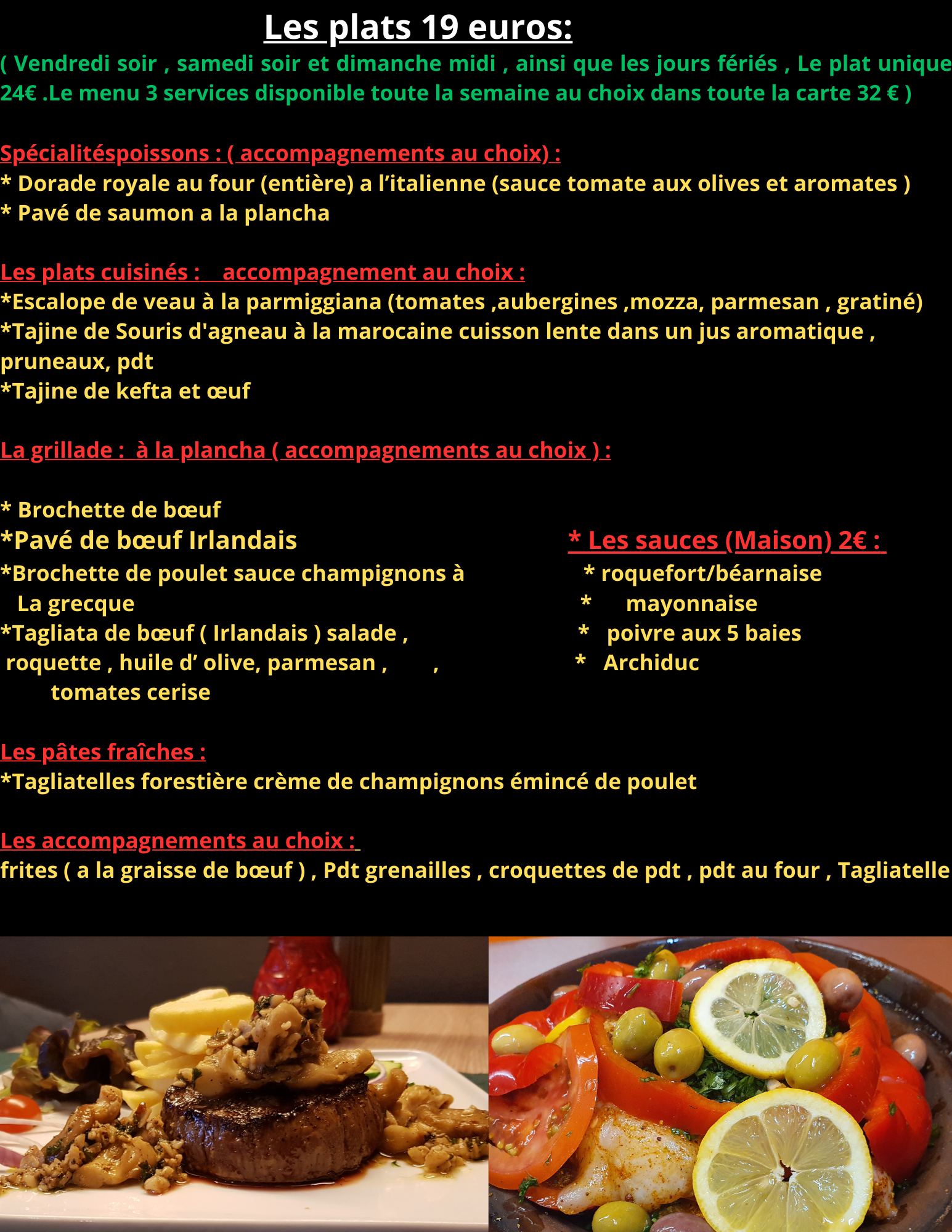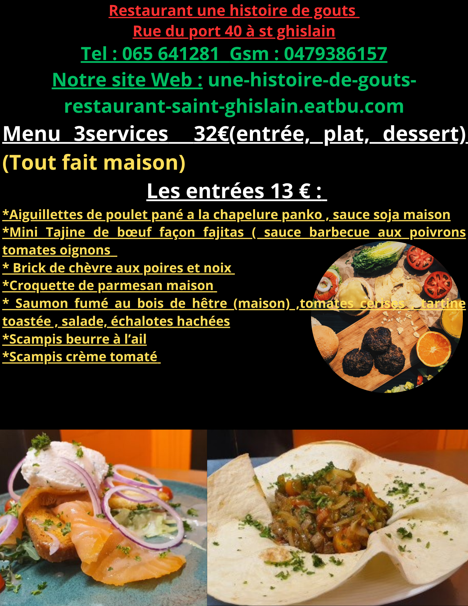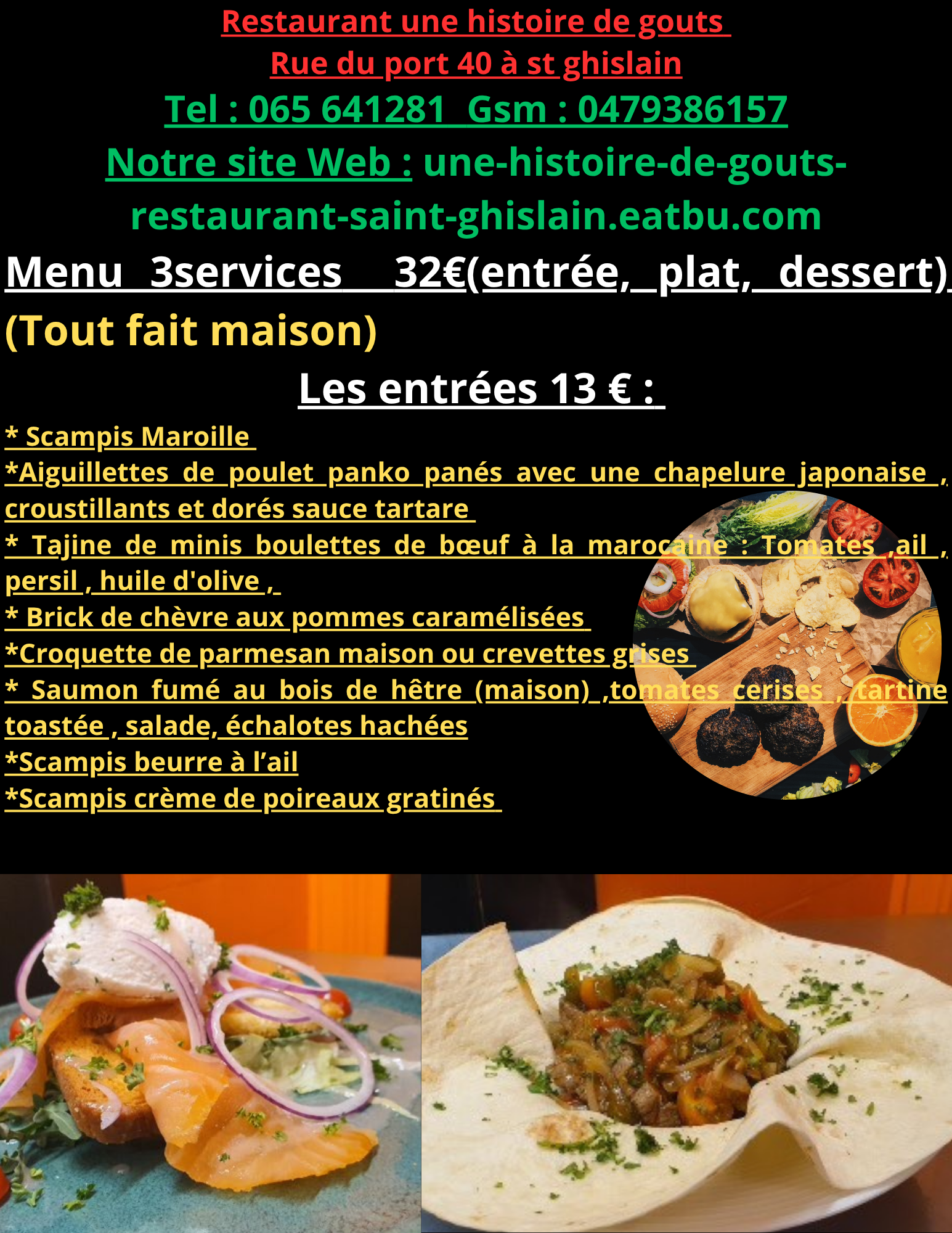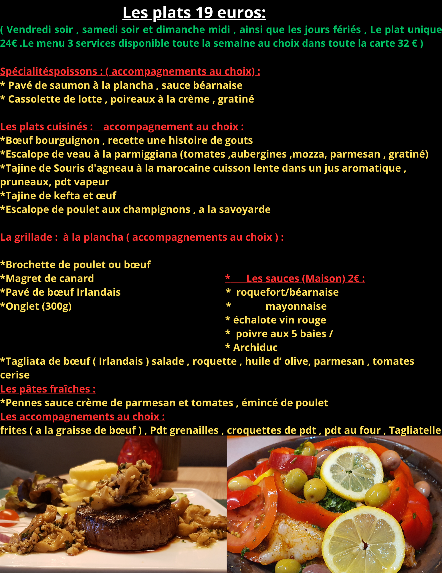 Tout nos plats sont fait maison et cuisinés exclusivement à partir de produits frais ! (service traiteur disponible aussi)