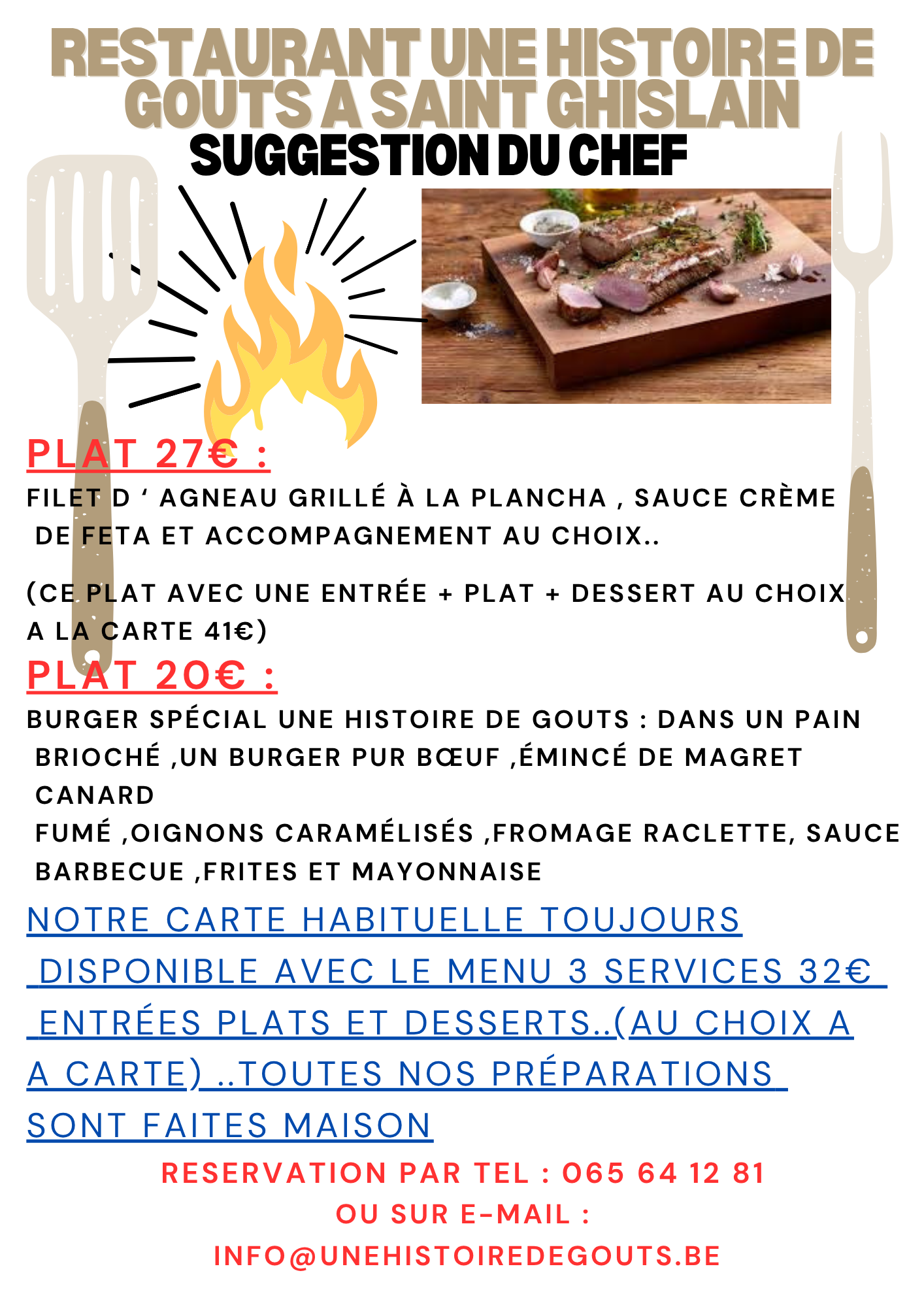 APPELER +3265641281Profitez le temps d'un repas d'un voyage gustatif chez Une histoire de goût !